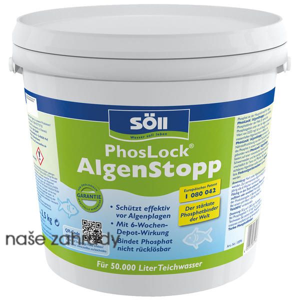 Přípravek proti řasám a prevence proti řasám PhosLock AlgenStopp 50 m3 - fosfát minus pro odstranění řas pro okrasné rybníčky. Přípravek váže fosfáty - živné látky, kvůli kterým roste řasa v nádrži. Ošetření vody před zimou a na jaře.