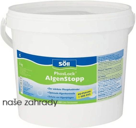 PhosLock AllgenStopp na 100 m3 je přípravek proti řasám v jezírku a prevence proti řasám, který váže fosfáty z vody, které patří mezi živiny pro řasy. Ošetření vody před zimou a na jaře. Přípravek proti řasám PhosLock AllgenStopp 100 m3 pro zahradní jezírka.