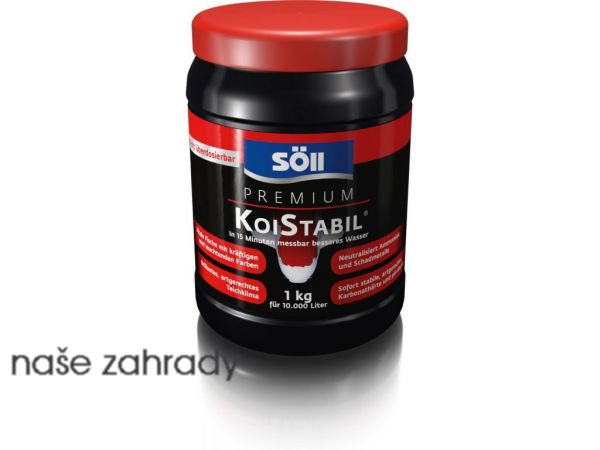 Přípravek k úpravě vody SÖLL KoiStabil na 10.000 litrů stabilizující pH a odstraňující těžké kovy z jezírkové vody. Premium KoiStabil je valitnější než