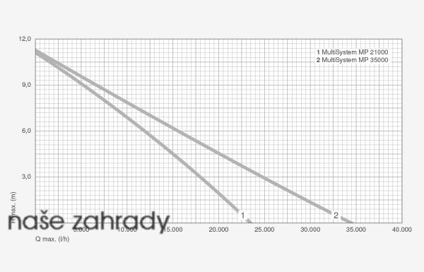 Jezírkové čerpadlo MESSNER Multisystém MP 21000, 23400 l/h, dopravní výška vody 11 m.