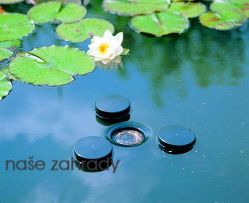 Tři plováky zajišťují automatické přizpůsobeni odsávače hladiny daného jezírka.