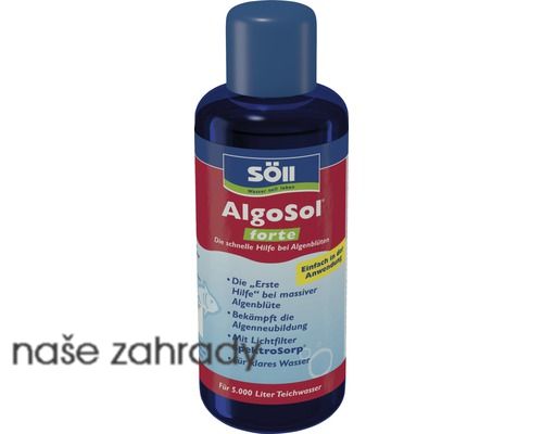 Přípravek proti řásám AlgoSol Forte 250 ml na 5m3 vody pro rychlou a okamžitou pomoc při masivním výskytu řas v jezírku.