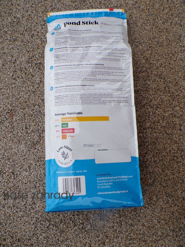 s 28% obsahem proteinů bez použití masokostní moučky. Tím pádem je krmivo mimořádně chudé na fosforečnany a tím pádem nepodporuje růst řas, tzn. LOW ALGAE FORMULA!