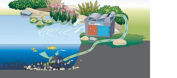 s integrovanou UV lampou 5W (2 v 1). Je určen mimo jezírko. Pracuje na principu mechanicko-biologické filtrace a ve spojení s UV C zářením. Zajistí čistou vodu v jezírku. Sestava o