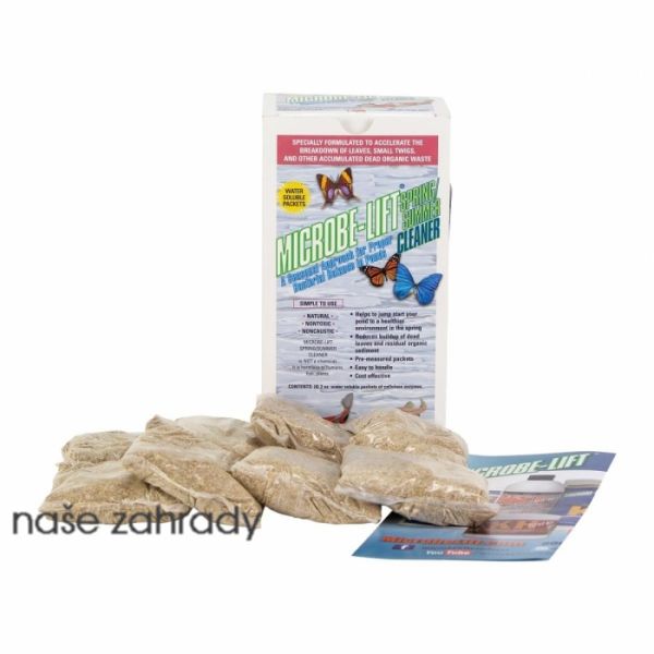 Celulózní bakterie a enzymy Microbe-lift Spring summer cleaner pro celoroční použití. 8 sáčků je pro 10-20 m3 jezírka na celou jarní/letní sezónu. Nebo na 100-200 m3 jezírko jako jednorázová dávka. Velice unikátní celoroční preparát extrémně urychlující rozklad nečistot, usazenn a odumřelých řas.