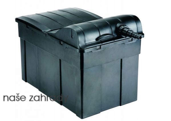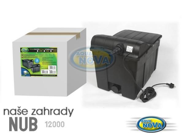 Gravitační filtr do jezírka AQUA NOVA NUB-12000 včetně vestavěné UV lampy 18 W a zářivky pro okrasné nádrže do 16 m3, s rybami jako je karas, jesen, závojnatka až 8 m3, pro chovné ryby 4 m3. Beztlaká tříkomorová filtrace čistí vodu mechanicky i biologicky a voda z ní vytéká samospádem. Tato jezírková filtrace může být postavena na vrchol vodopádu nebo potůčku nebo vedle jezírka. Voda z ní vytéká přitažlivostí země a vodu netlačí nad sebe jako je to u tlakových filtrů.