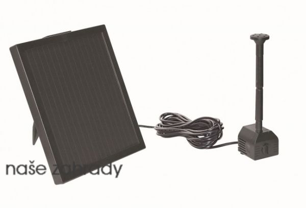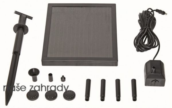 Německá solární fontána PondoSolar 150 obsahuje fontánové čerpadlo do jezírka na vodotrysk Pontec se solárním panelem a sadu fontánových trysek. Solární čerpadlo s vodotryskem je vhodná pro malá zahradní jezírka. Včetně přípojek na hadice a 4 různých fontánových efektů. Solární fontána bez nutnosti připojení el. proudu. Za slunečného počasí fontána krásně tryská.