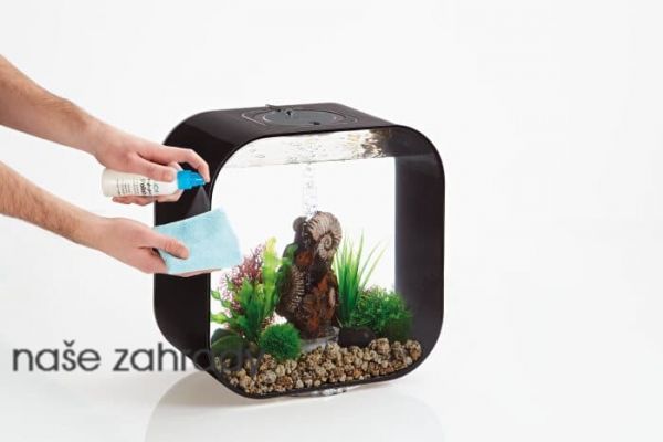 Přípravek je antistatický,odpuzuje prach a povrch akvária je pak odolný vůči otiskům prstů.