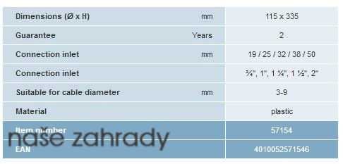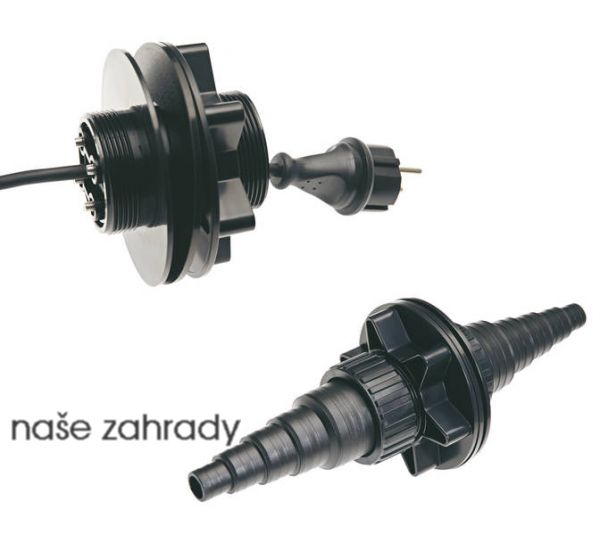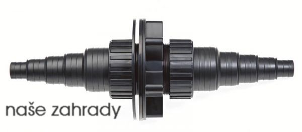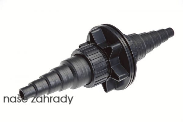 Sada umožní bezpečný průchod jezírkovou folii. Stěnová průchodka s hadicovými trny z obou stran pro průměr hadice 3/4" - 2". Včetně průchodky pro kabel.