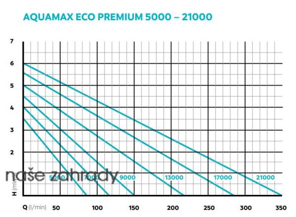 Nové modely AquaMax Eco Premium: K dispozici je šest modelů s různými dopravními výškami a průtoky, které pokrývají potřeby různých velikostí jezírek. Čerpadlo nabízí čerpací výkony od 5000 l/h do 21000 l/h a dopravní výšky vody od 3,5 do 6 metrů vodního sloupce.