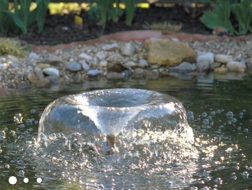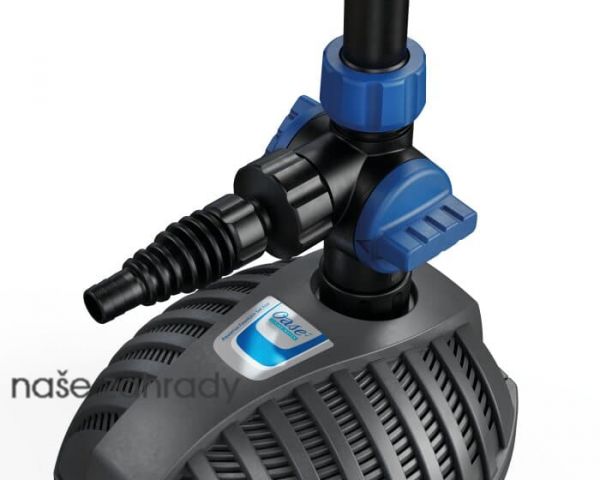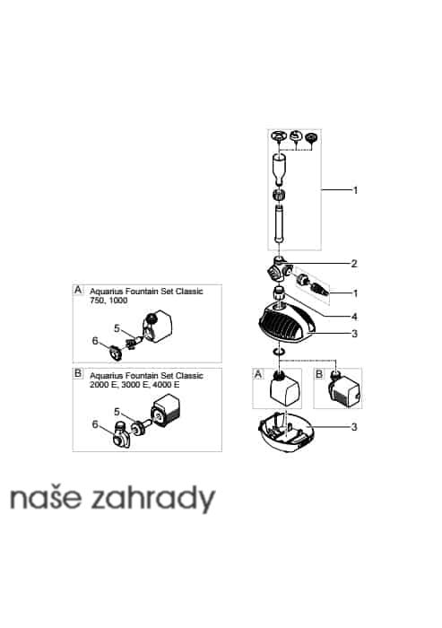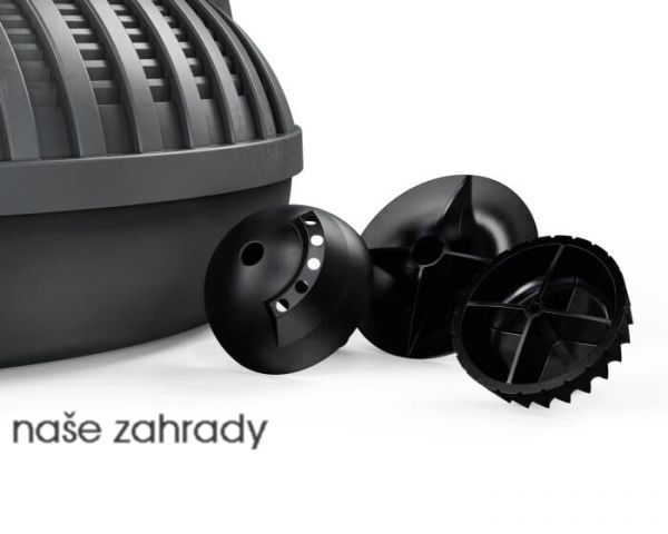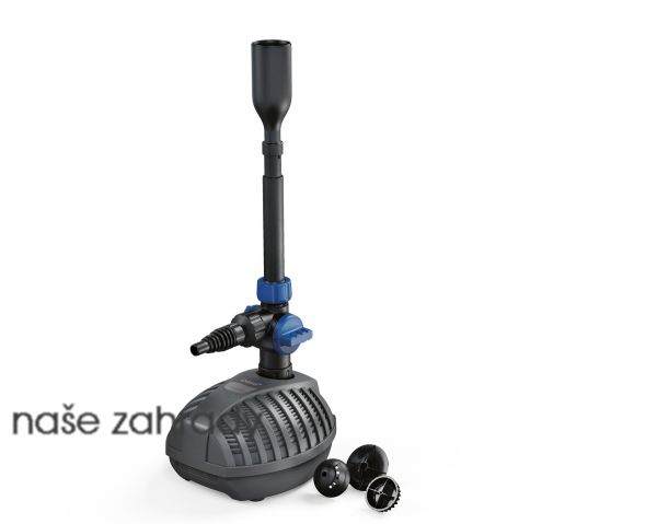 Trysky fontány: Nástavce fontány vytváří několik vzorů. Čerpadlo má odbočku pro připojení například filtru. Vestavěný mechanický regulátor průtoku umožňuje nastavení množství vody, které vstupuje do fontány nebo filtru.