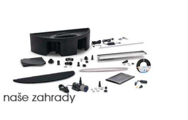 Se sadou Waterfall Complete Set Wall 90 a LED osvětlením sami vybudujete na zahradě nebo u jezírka moderní vodopád. V setu naleznete nerezový vodopád a vše co budete potřebovat pro jeho fungování. Vodopádová sada je vyladěná tak, aby komponenty dokonale spolupracovaly. Obsahuje čerpadlo, nádrž, vodopád, osvětlení, Silent Splash pro zamezení stříkání a spojovací prvky. Hmotnost 31,5 kg.