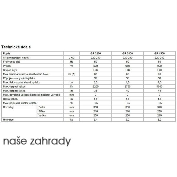 Pontec německé povrchové čerpadlo PondoGarden 3200 na zalévání a distribuci vody v domácnosti má tyto specifikace:
