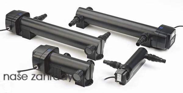 UV lampy 36W a 40W jsou hodné pro nádrže až do 45 m3 vody. Pomocí UV lampy se eliminuje vznášející se řasy (zelená voda) v jezírku.