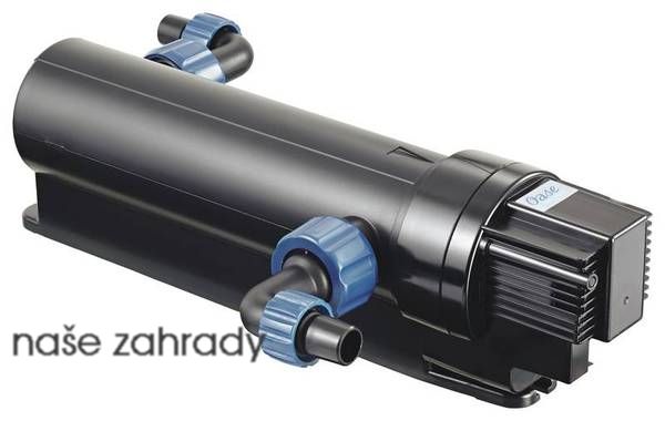 unikátní rozsáhlý sortiment produktů pro svět akvárií v prostředí domova. Akvarijní UV lampa ClearTronic o různých výkonech patří mezi výrobky, které dokonale uspokojí veškeré nároky ambiciozních nadšenců v akvaristice, stejně jako požadavky nováčků a nadšenců do designu. UV sterilizátor ClearTronic OASE zajistí, že bakterie, choroboplodné zárodky a látky způsobující zakalení vody nebudou mít žádnou šanci. V sortimentu je UVC čistící zařízení 7W, 9W a 11W. UV lampa se zapojuje mezi čerpadlo a filtr nebo k vnější filtraci . Voda protéká uvnitř UV lampy okolo křemíkové trubice, ve které se nachází UV-C zářivka. UV světlo vodu ozáří a sterilizuje. Proto může být voda v akváriu zdravá a čistá. UV zářivka by se měla měnit za novou nejdéle po roce užívání. I když v té době může ještě svítit, nevytváří již dostatek ultrafialového záření. Výhodou UV lampy ClearTronic je snadná montáž a demontáž, kvalitní zpracování, malé rozměry a v neposlední řadě 100 % VDE testovaná bezpečnost proti poškození zraku. Podobná UVC čistící zařízení se používají při čištění vody v jezírku. UV lampy pro jezírka jsou větších rozměrů a snesou vyšší průtoky vody. V případě se OASE se jedná o výrobky Bitron a Vitronic. Jejich výkon má rozpětí od 11W do 240W. Sortiment produktů v oblasti interiérové akvaristiky OASE však není vhodný pouze pro ty nejpřísnější estetické požadavky a styly vybavení, ale zapůsobí také maximální kvalitou, absolutní spolehlivosti a inovativními produkty s minimálními požadavky na údržbu. Dlouhé čisticí cykly, snadno čistitelné akvarijní vnitřní a vnější filtry s topítky nebo bez topení, či praktičtí pomocníci činí z akvária kompletně novou zkušenost. Vedle těchto UV lamp sjou samozřejmě na trhu i další kvalitní UV sterilizátory jako od značky Eheim.