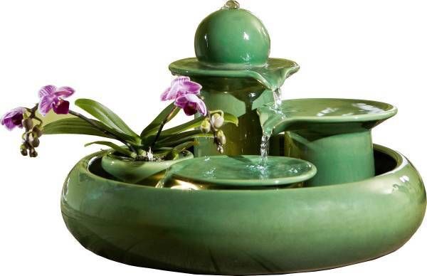 Přidáním vonné esence do bytové fontány vytvoříme atmosféru podle své nálady. Mezi exkluzivní kamenné fontány patří např. pokojová fontána KASUMI. Voda krásně stéká po nasvícené břidlici. Uplatnění nalezne jako působivý bytový nebo kancelářský doplněk. Fontánové pokojové miničerpadlo, čerpává vodu z nádoby a ta stéká zase zpět. Na cirkulaci vody však můžeme také použít akvarijní čerpadla. Tato vodní čerpadla však nejsou ve většině případů vybavena fontánovými tryskami. Osvědčilo se nám čerpadlo King 1, které je dodáváno v několika výkonových verzích s fontánovými nástavci nebo bez nich. Kdo potřebuje k fontánce malé osvětlení, nalezne ho u čerpadel Seliger řady L nebo PondoCompact 300iL. bea20049 Dále nabízíme také pokojové mlžné fontány. Mlhové fontány pracují pomocí mlhovače, který vyvíjí vodní mlhu, takže taková fontána může sloužit jako malý zvlhčovač vzduchu. Nedosahuje však takového efektu jako lékařské přístroje. Tak jako tak jsou pokojové fontány pěkným bytovým doplňkem a vhodným dárkem k různým příležitostem.