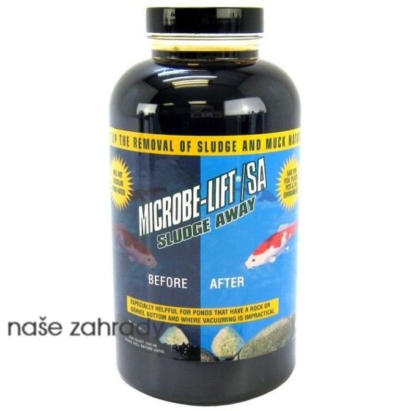 Jezírkový přípravek MICROBE LIFT – SLUDGE AWAY Kaložrout 1 l na 12,5m3 vody odstaňuje kal, bahno, sedimenty ze dna jezírka pomocí mikroorganismů.