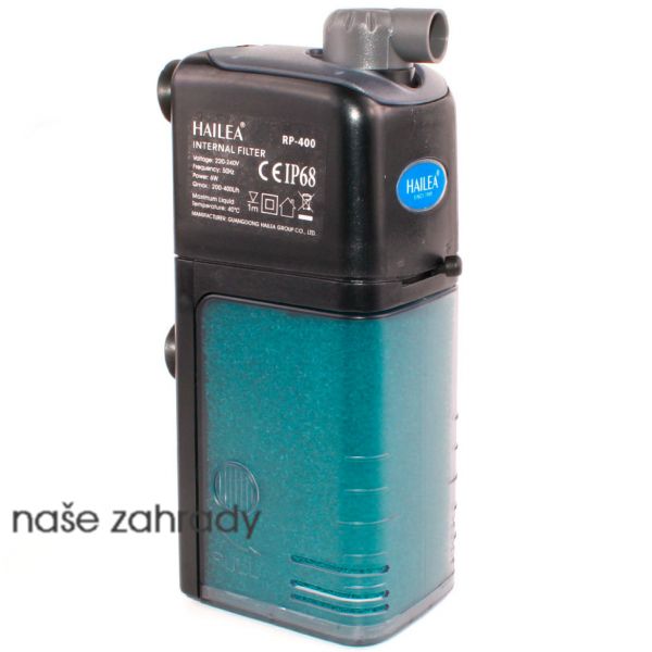 Vnitřní akvarijní filtr Hailea RP-400, průtok max. 400 l/h, je oblíbená filtrace pro akvárium. Výrobce akvarijní techniky Hailea zaměřil své R spol. D oddělení na vývoj nové hobby techniky.