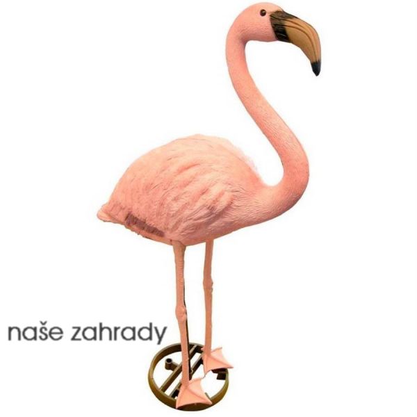 Zahradní dekorativní figurka Plameňák stojící z kvalitního plastu. Dekorace do zahrady nebo k jezírku také pomáhá jako plašič před ptáky a predátory, neboť vypadá jako živý. Obdivuhodné detailní propracování a kvalitní materiál zahradní dekorace Plameňák ukazuje blížícímu se dravci, že oblast je obsazena. Chrání obyvatele rybníků před útočníky.