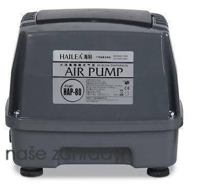 Výkonný vzduchovací kompresor Hailea HAP-80, 80 l/min.(4800 l/h), 60W, pro větší zahradní jezírka až 50 m3, vzduchování akvárií, biologické čističky či chovné stanice.