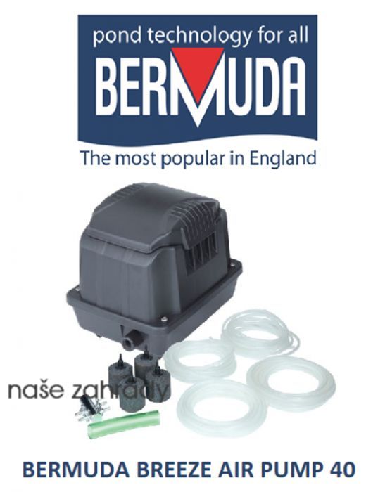 Vzduchovací kompresor Bermuda Breeze Air Pump 30 40l/min., 30W vytváří zdravější prostředí pro ryby a vodní rostliny. Provzdušňování je zvláště důležité během teplého počasí, kdy je přísun kyslíku redukován. Vyšší obsah kyslíku je vyžadován při léčení nemocí ryb. Vzduchování zároveň udržuje jezírko nezamrzlé během zimních měsíců.
