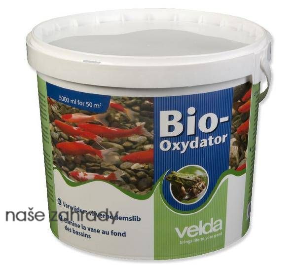 Jezírkový přípravek VELDA Bio-Oxydátor 5000 ml pro čištění dna nádrže. Odstraňuje nečistoty ze dna a z kamenů. Biologický přípravek s obsahem čistících bakterý VELDA Bio - Oxydátor dodává kyslík na dno jezírka. Produkt obsahuje vybrané bakterie, které umí rozkládat hrubé nečistoty a usazeniny na dně jezírka, avšak navíc obsahuje i oxydační složky, které se postupně uvolňují a provzdušňují dno jezírka a připravují optimální prostor pro osídlení aerobními bakteriemi. Funguje po celý rok a to včetně zimních měsíců.