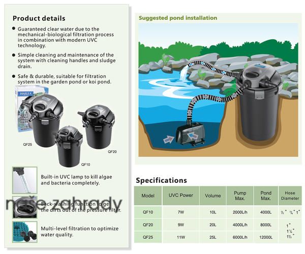 Tlakový filtr do jezírka HAILEA QF10 s UV lampou 7 W pro okrasná jezírka do 4000 l