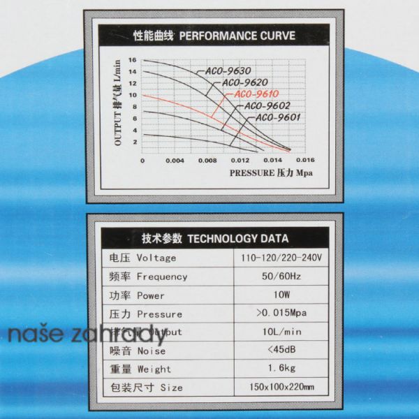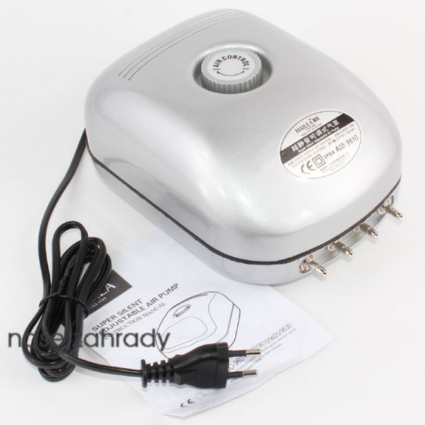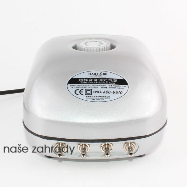 Vzduchovací akvarijní kompresor ACO-9610 se 4 vývody a tichým chodem do 45 dB s jehož pomocí dodáte do vody akvária životně důležitý kyslík.