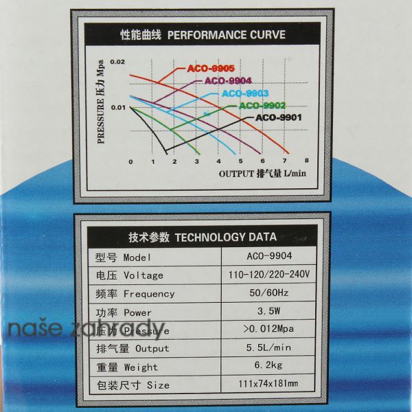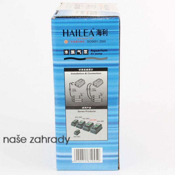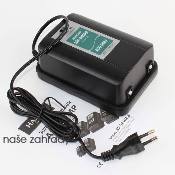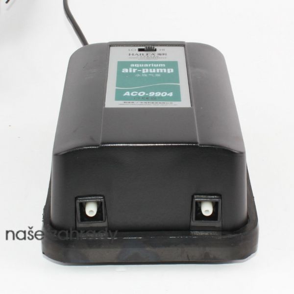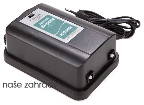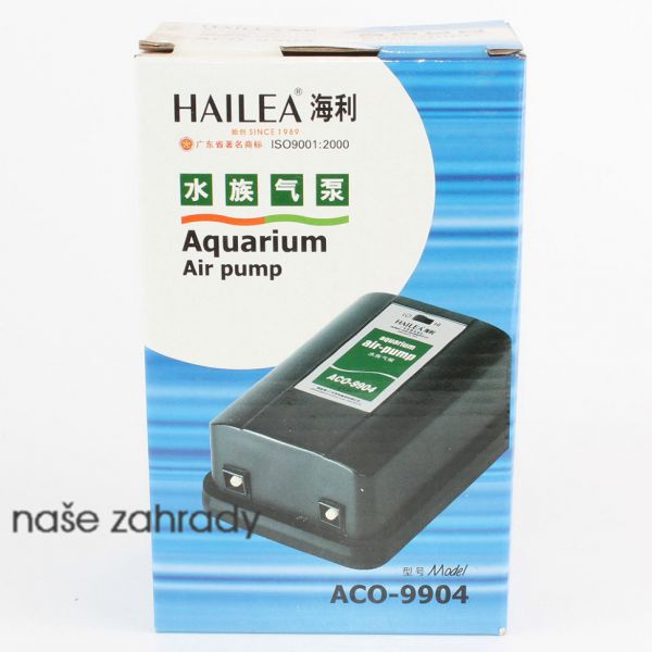 Akvarijní vzduchovací kompresor Hailea ACO-9904, max. 330 l/h, pro nádrže 200 - 450 litrů. Membránové vzduchové čerpadlo (vzduchovadlo), s jehož pomocí dodáte do vody akvária životně důležitý kyslík.
