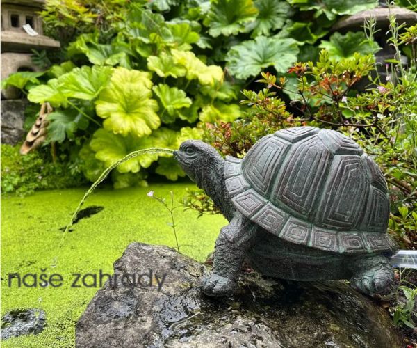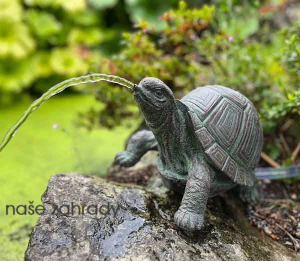 Vodní chrlič ve tvaru Želvy vyroben z odolné pryskyřice pro dlouhověkost a realismus jako dekorace pro Vaše jezírko.