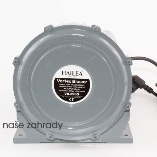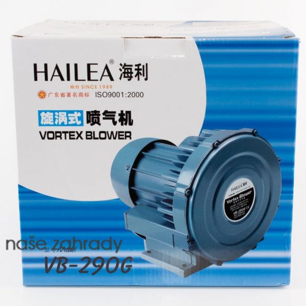 Vzduchová turbína Hailea VB-290G, max. 21000 l/h je vhodná pro vzduchování jezírka, pro pěstírny ryb, biologické čističky. Slouží tedy jako vzduchovací kompresor pro jezírka a akvaristiku, Vzduchovací turbíny Hailea jsou velice výkonná zařízení, která zajišťují zdroj stlačeného vzduchu pro specifické potřeby velkých akvárií, nebo pro případ sdruženého vzduchování pro více akvárií, pěstírny akvarijních ryb, líhně, nebo jezírka.