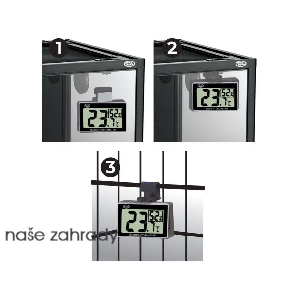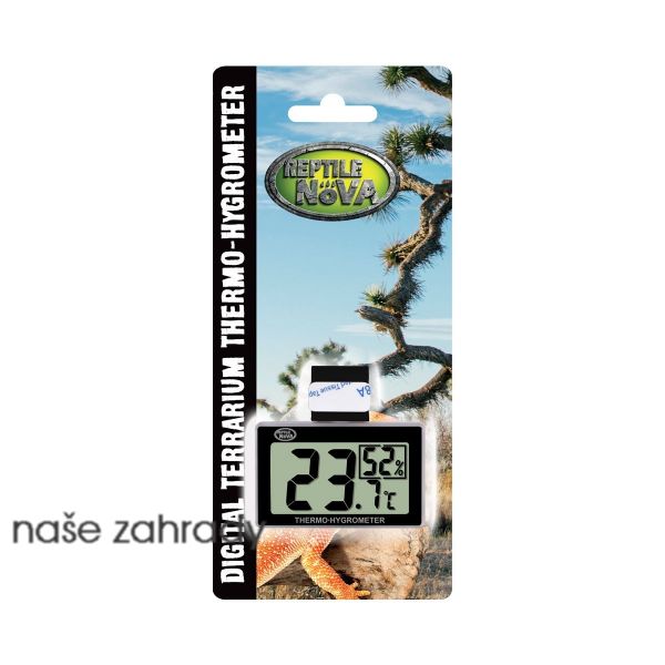 Digitální teploměr s vlhkoměrem Reptile Nova pro sledování teploty a vlhkosti v domácích teráriích pro plazy a další terarijní živočichy.