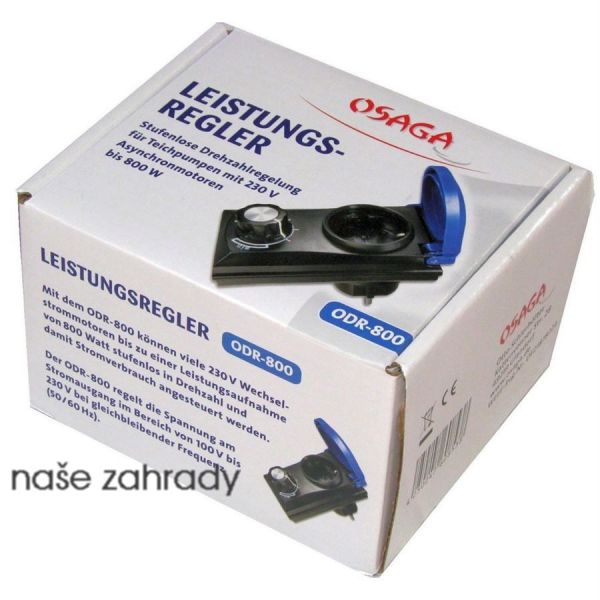 OSAGA regulátor výkonu ODR-800 je tu proto, pokud potřebujete jednoduše ovládat výkon čerpadla a halogenová světla s příkonem do 800W. Regulátor výkonu je ovládaný potenciometrem: