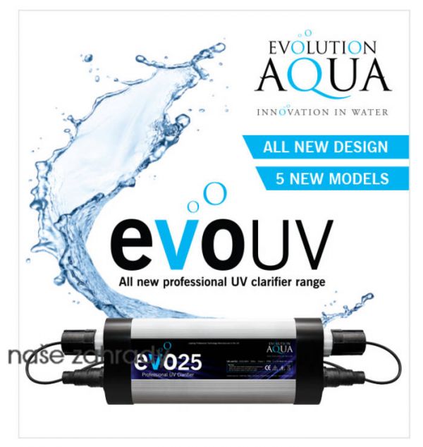 Voda je dopravována čerpadlem, které musí být umístěno před UV lampou. Následně je čištěna pomocí UV záření typu UV-C. Toto UV-C záření potlačuje za specifických podmínek i množení pro ryby nebezpečných jednobuněčných mikroorganismů (různých druhů bakterií, plísní, virů a řas). Některé UV lampy jako jsou zářiče Evolution Aqua UV Evo Press mají optimalizovanou konstrukci pro bezztrátové průtoky, čímž se zvyšuje jejich energetická účinnost. Lze je kombinovat téměř se všemi filtračními systémy. Jejich montáž je pomocí ohebných hadic neuvěřitelně jednoduchá. Všechny přístroje UV EVO Press jsou dodávány s vysokým výkonem UV zářivky a energeticky úsporným předřadníkem, které jsou namontovány do vodotěsného robustního pouzdra. Nejvýkonnější model UV EVO 75 W je vhodný pro jezírka o obsahu 75000 litrů. Velmi účinný předřadník a vysoce výkonná zářivka zajišťují ekonomičtější provoz než běžné UV zářiče o výkonu 110 Wattů. V konečném výsledku se jedná o značné finanční úspory. UV lampy Evo jsou vyráběny přímo ve Velké Británii.