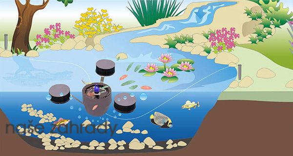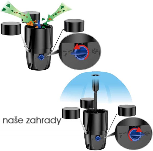 Skimmer může díky nástavci rozstřikovat vodu jako fontána, což vytváří krásnou scenérii a okysličuje vodu.