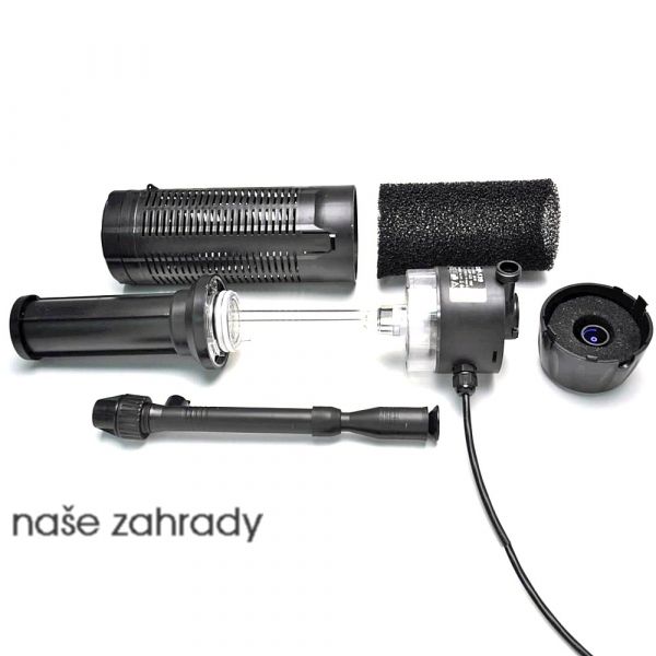 Čerpadlo s filtrem a UV lampou INVITAL vnitřní fontánová UV lampa P-139 13W. Ponorný filtr s čerpadlem 1000 l/h na vodotrysk a vestavěnou UV lampou 13W zajistí čistou vodu malých okrasných nádržích. Jezírkový UV sterilizér odstraní zelený zákal a škodlivé mikroorganizmy. Potřebujete v místě zapojení přívod el. proudu. Pro okrasná jezírka bez ryb do 6000 l, s rybkami v malém množství do 2m3.