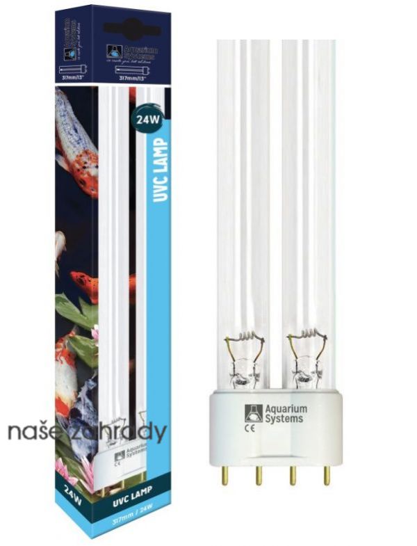 UV zářivka 24W AQ Systems uznávaného výrobce podobná Arcadia UltraClear UVC 24W nebo Osram HSN L 24 W. Pro čistotu vody v akváriích a jezírkách. UV-C zářivka 24W je kompatabilní s většinou UV-C lamp, např. pro UV lampy OASE, Pontec, Heissner, Aqua Nova, Resun a další. Plovoucí řasy jsou odstraněny a škodlivé zárodky nemají šanci.