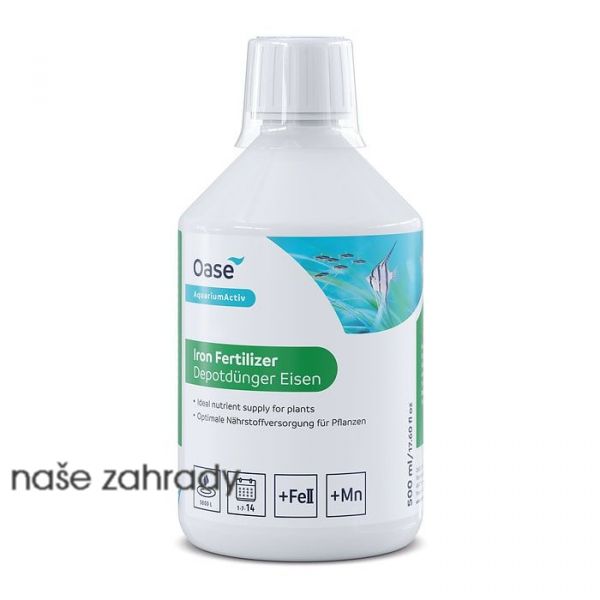 Hnojivo Slow Release Iron Fertilizer 500 ml. Naše hnojivo s pomalým uvolňováním železa obsahuje důležité živiny pro všechny vodní rostliny a zejména dodává akvarijní a jezírkové vodě esenciální stopový prvek železo. Hnojivo také obsahuje mangan, který podporuje zdravý a bujný růst vodních rostlin a krásné barvy listů. Účinně zabraňuje řídkému růstu, chloróze z nedostatku železa a bledým, průsvitným listům. Sloučenina železa (II) je akvarijními rostlinami obzvláště dobře absorbována.