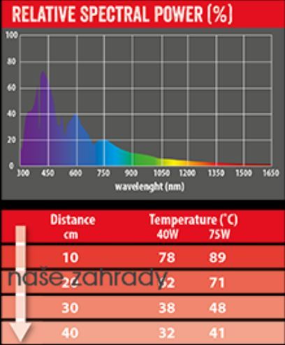 Unikátní konstrukce výhřevného reflektoru zajišťuje produkci intenzivního infračerveného (tepelného) záření. Reflektor je chráněn krycí kovovou mřížkou. Je vhodné kombinovat se světelnými a UVB žárovkami nebo LED osvětlením.