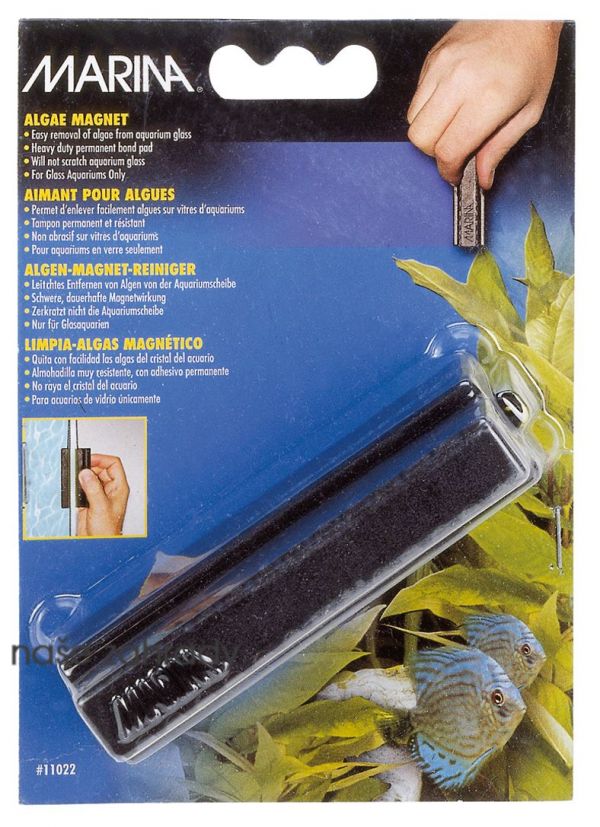 Magnet k pohodlnému čištění stěn akvária. Velikost: 10,5 x 4 cm.