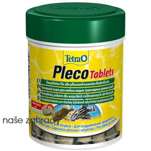 Tetra Pleco Tablets 275 tablet je kvalitní krmení pro akvarijní ryby. Tetra Pleco Tablets 275tablet je vhodné jako potrava býložravých ryb. Podáváním těchto tablet podporujete rybí imunitní systém a vitalitu. Tablety Tetra Pleco zajišťují optimální výživu pro býložravé a plaché ryby žijící u dna. Nutričně vyvážená strava větších býložravých ryb hledajících potravu na dně nádrže. Vysoké procento řasy Spirulina podporuje optimální zdraví a vitalitu ryb.Tablety mají dvě barvy. Podporují dobrý zdravotní stav, krásné zbarvení a vitalitu. Obsažené rostlinné bílkoviny přispívají k uspokojení specifických nutričních potřeb býložravých ryb. Řasa Spirulina podporuje zdraví a vitalitu, zatímco omega-3 mastné kyseliny podporují zdravý vývoj. Díky tabletové formě se potrava ve vodě uvolňuje pomalu. Tablety Tetra Pleco jsou ideální zejména pro ryby, jako jsou malí krunýřovci, parmouni širokopruzí, hlaváčovití a sturisoma panamská.