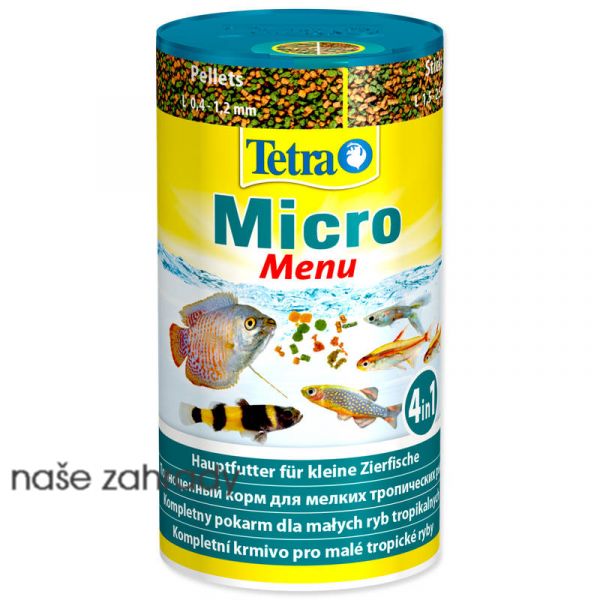 4 různé druhy krmiva v oddělených komorách pro malé ryby.