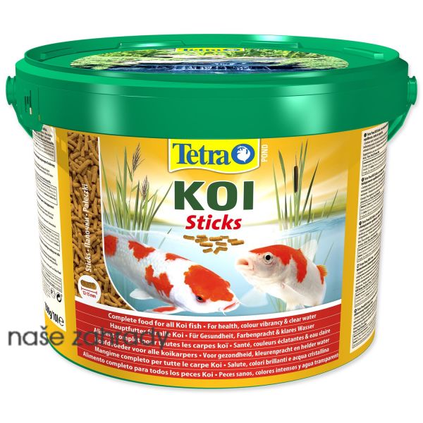 Krmení pro ryby Tetra Pond Koi Sticks 10 l jsou plovoucí tyčinky pro ryby v jezírku jako je karas, jesen, kapr KOI, závojnatky.
