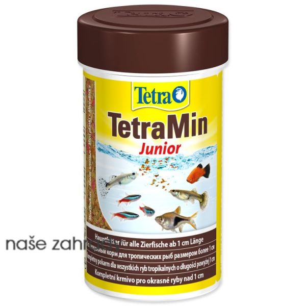 TetraMin junior 100ml je speciální druh vločkového krmiva pro potěr v délce přes 1 cm. Krmení TetraMin junior má tvarminivloček. Vločky pro každodenní krmení mladých akvarijních rybiček. Kromě BioActive formule pro zdravý imunitní systém a růst ryb, jsou součástí krmení prebiotika pro dobré trávení. Plovoucí a nespadávající vločky umožňují správné stravování. TetraNin junior doporučujeme také jako krmivo pro menší druhy rybek, např. tetry neonové.
