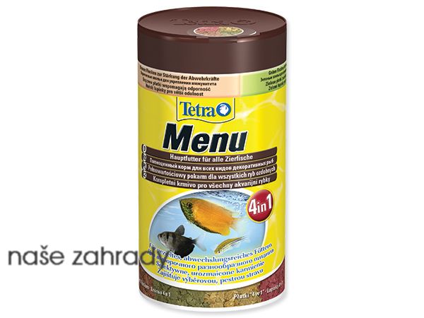 4 různá vločková krmiva pro všechny druhy okrasných rybek.