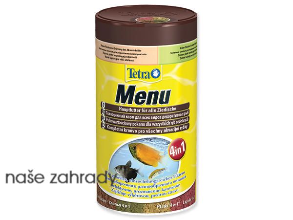 4 různá vločková krmiva pro všechny druhy okrasných rybek.
