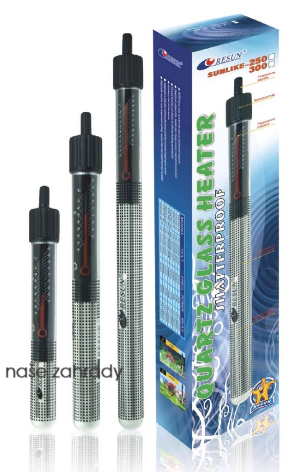 Celoponorné akvarijní topítko Resun Sunlike 300W se snadno nastavitelnou teplotou pomocí stupnice v uzávěru. Termostat zajišťuje, že se po dosažená teploty topítko do akvárií automaticky samo vypne. Hermeticky uzavřena zkumavka.