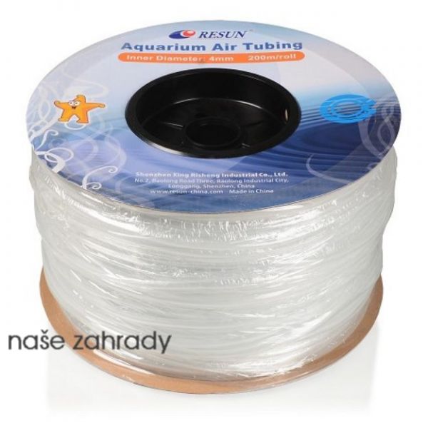 Hadička 200m, světlost 4mm. Flexibilní silikonová vzduchovací hadička 6/4 mm pro vzduch i CO2. Role 200 m, odolná a univerzální, vhodná pro všechny akvarijní systémy.