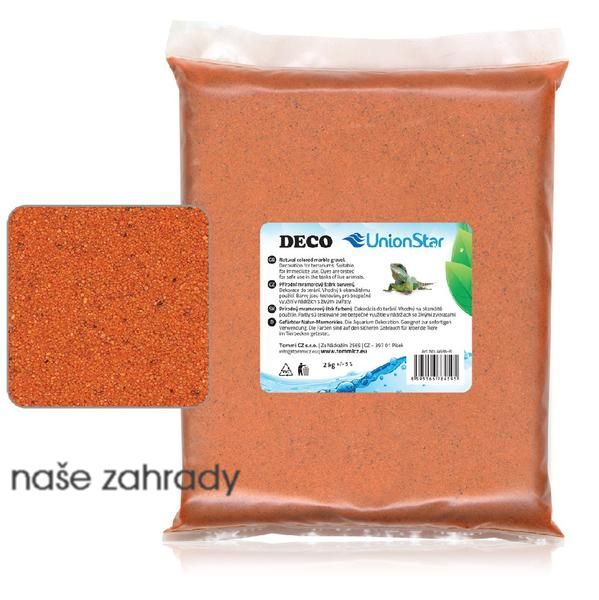 Terarijní písek DECO oranžový v balení 2kg jemné zrnitosti pro terária. Pouštní písek je barvený trojí vrstvou certifikované barvy vhodné pro použití v teráriích. Nezávadný pro všechny terarijní živočichy.