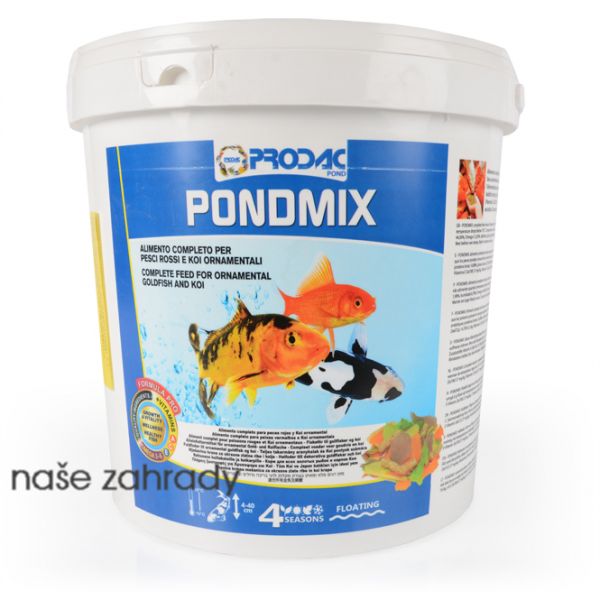 Kompletní krmivo Prodac Pondmix 10 l pro okrasné ryby v jezírkách a rybníčcích - zlaté rybky, koi - kapry, okrasné karasy apod.